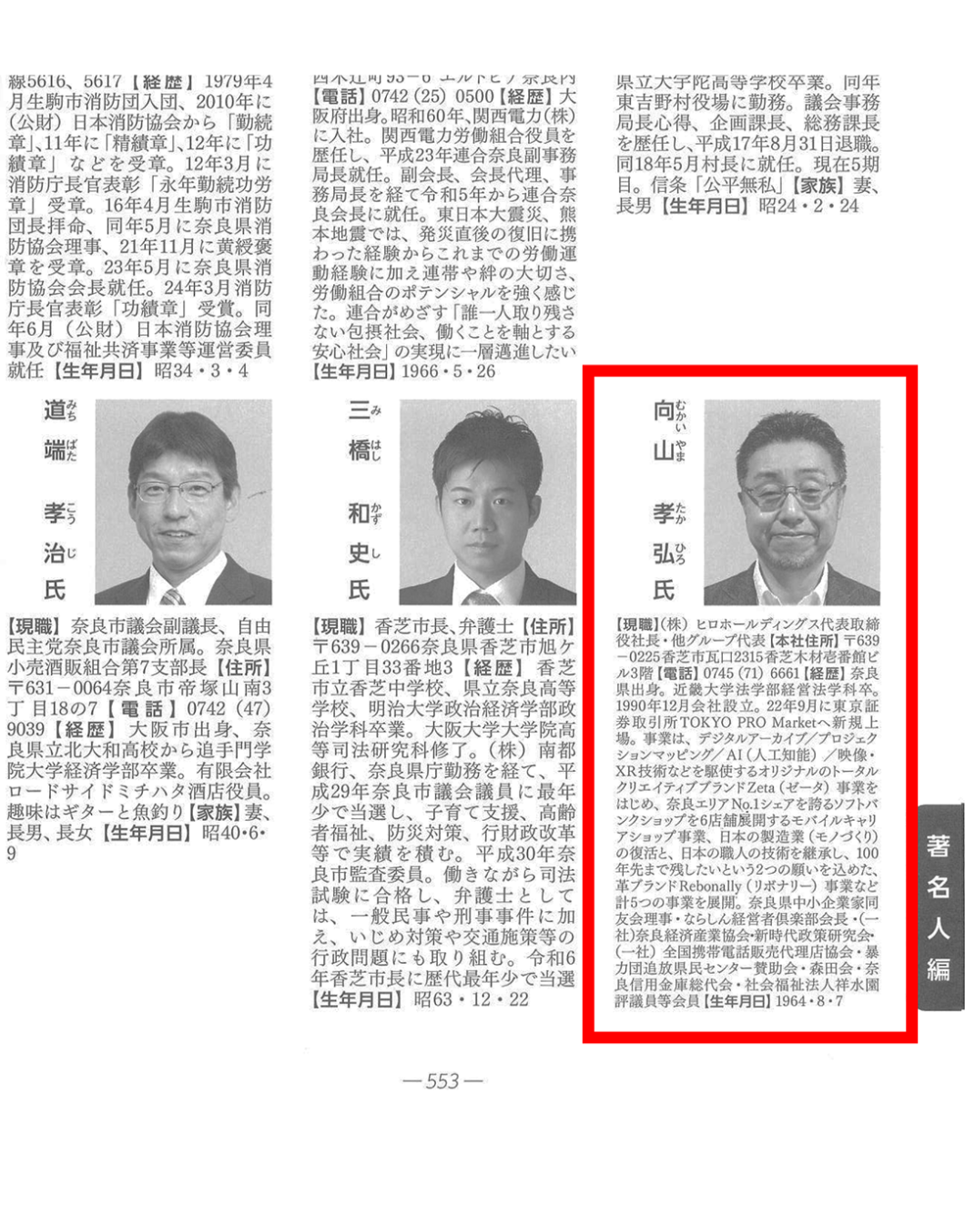 2026年版「奈良県年鑑」の「著名人編」で弊社代表の向山が掲載されました 2025/12/26 メディア紹介 奈良県に関する最新情報を掲載した総合データブック、2026年版「奈良県年鑑」の「著名人編」で弊社代表の向山が掲載されました。 一覧へ